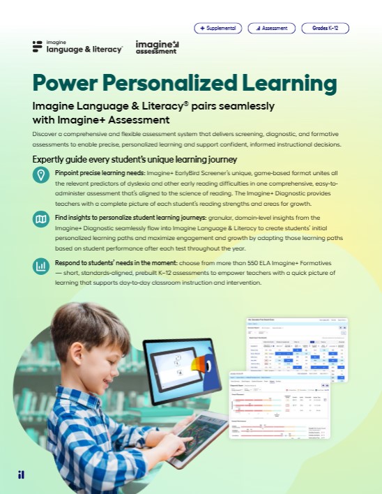 Imagine+ Assessment for Language & Literacy Product Feature Benefit Flyer