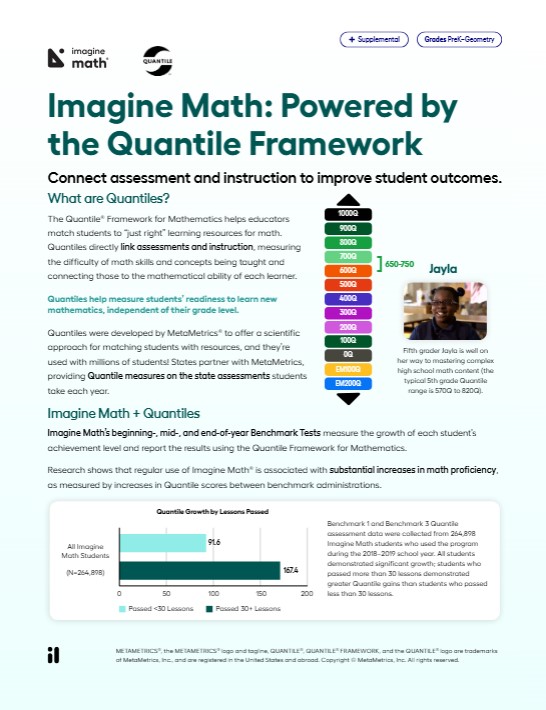 Imagine Math Quantile Framework Product Feature Benefit Flyer