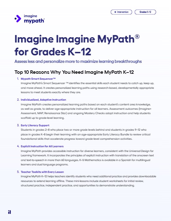 Imagine MyPath for Grades K-12 Product Feature Benefit Flyer