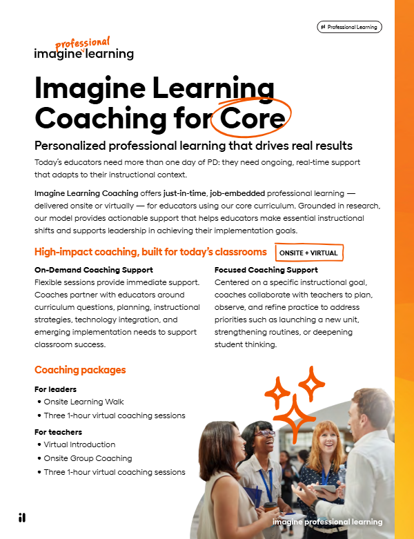 Imagine Professional Learning Coaching for Core Curriculum Product Feature/Benefit Flyer