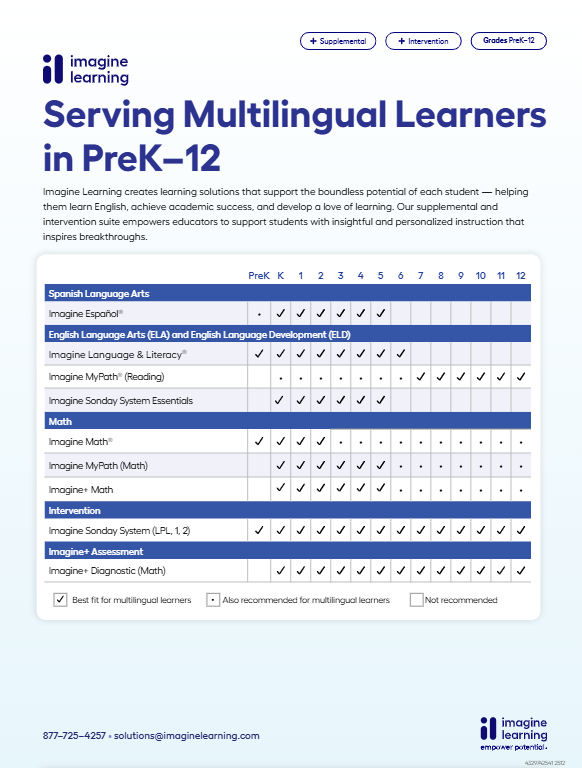 Imagine Language & Literacy Multilingual Learners Product Feature Benefit Flyer