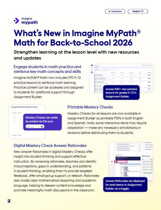 Imagine MyPath Assessments Product Feature Benefit Flyer